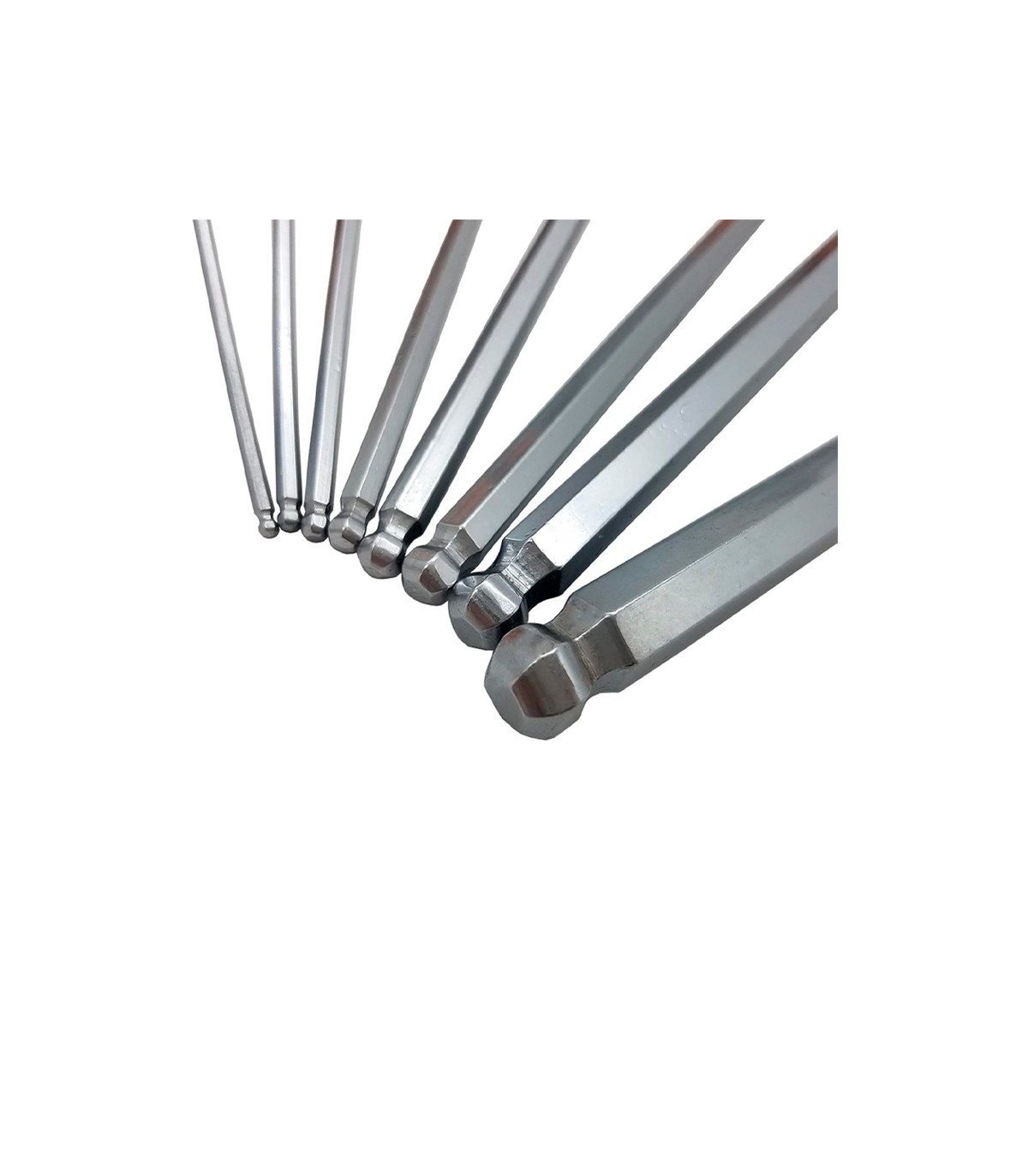 Llave Allen hexagonal, con punta esférica. Cromado mate. Acero Cr-V S2. DIN 911L, ISO